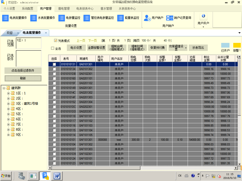 批量遠(yuǎn)程操作場(chǎng)景中,系統(tǒng)提供了多項(xiàng)功能,針對(duì)開戶、報(bào)警1、報(bào)警2、欠費(fèi)、未開戶、失聯(lián)狀態(tài)都有不同的顏色顯示;并且支持遠(yuǎn)程對(duì)儀表進(jìn)行遙控,遙控的命令類型如下: 1.電價(jià)下發(fā);2.設(shè)置下發(fā)(下發(fā)報(bào)警金額閾值和過載功率閾值);3.保電(強(qiáng)制儀表合閘);4.恢復(fù)預(yù)付費(fèi)(欠費(fèi)自動(dòng)跳閘的模式);5.拉閘(強(qiáng)制斷電);6.抄表導(dǎo)出(導(dǎo)出當(dāng)前所有表狀態(tài)為EXCEL)
