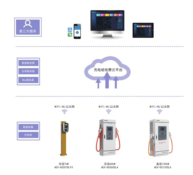 安科瑞Acrelcloud-9000充電樁收費運營云平臺系統(tǒng)通過物聯(lián)網技術對接入系統(tǒng)的充電樁站點和各個充電樁進行不間斷地數據采集和監(jiān)控,同時對各類故障如充電機過溫保護、充電機輸入輸出過壓、欠壓、絕緣檢測故障等一系列故障進行預警;用戶通過微信/支付寶小程序掃描二維碼,進行支付后,系統(tǒng)發(fā)起充電請求,控制二維碼對應的充電樁完成電動汽車的充電過程。