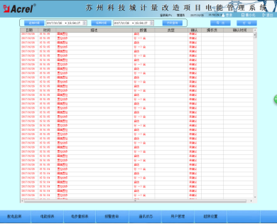 ??隨著社會的發(fā)展及電力的廣泛應(yīng)用,電力監(jiān)控系統(tǒng)已成為全國各地工程項目、標(biāo)志性建筑/大型公共設(shè)施等大面積多變電所用戶的必然選擇,本文介紹的Acrel-3000電能管理系統(tǒng)在蘇州科技城計量改造項目的應(yīng)用,可以實現(xiàn)對樓層配電的實時監(jiān)控與電能管理,并且對于預(yù)付費售電情況進行實時報警,通知商鋪及時繳費,不僅能顯示回路用電狀況,還具有網(wǎng)絡(luò)通訊功能,可以與串口服務(wù)器、計算機等組成電力監(jiān)控系統(tǒng)。系統(tǒng)實現(xiàn)對采集數(shù)據(jù)的分析、處理,實時顯示變電所內(nèi)各配電回路的運行狀態(tài),對分合閘、負載越限具有彈出報警對話框及語音提示,并生成各種電能報表、分析曲線、圖形等,便于電能的遠程抄表以及分析、研究。該系統(tǒng)運行安全、可靠、穩(wěn)定,為變電所用戶解決用電問題提供了真實可靠的依據(jù),取得了較好的社會效益。