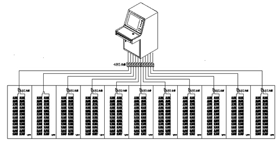 本工程監(jiān)控為共計245個用電回路,根據(jù)《建筑電氣火災(zāi)預(yù)防要求和檢測方法》有關(guān)條文明確要求“為防止電氣設(shè)備和線路漏電火災(zāi),應(yīng)在電源進線端設(shè)置自動切斷電源或報警的剩余電流動作保護器”。 因此本項目在各配電箱進線處設(shè)置漏電火災(zāi)探測器245臺ARCM300-J1以及245臺剩余電流互感器AKH-0.66L,并在消控室設(shè)立琴臺式電氣火災(zāi)監(jiān)控系統(tǒng)Acrel-6000/Q?,F(xiàn)場每個漏電監(jiān)控探測器均帶有485通訊接口,需通過屏蔽雙絞線將現(xiàn)場所有探測器以手拉手的方式串聯(lián)起來,連接時應(yīng)注意,每條485總線連接數(shù)量不超過32個,且在20個左右為宜。配電箱內(nèi)模塊通過29根485總線連接到就近的采集箱,采集箱通過光貓將信號轉(zhuǎn)為光信號上傳到Acrel6000琴臺式后臺。將各處的漏電及溫度信息進行集中監(jiān)控,便于工作人員進行統(tǒng)一管理。