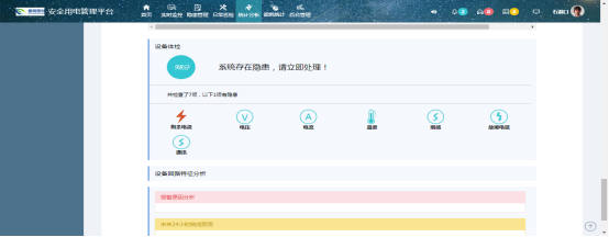 3)數(shù)據(jù)和隱患分析 數(shù)據(jù)分析結(jié)果可以為用戶提供參考價值,及早發(fā)現(xiàn)問題、杜絕隱患。