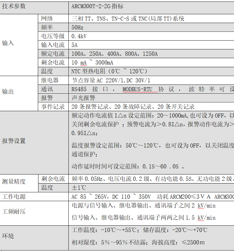 測量:實(shí)時監(jiān)測一路剩余電流、四路溫度、電流、電壓、功率、電能等電參量,遙信輸入、遙信輸出、諧波分析、GPRS無線通訊 遙信:4路開關(guān)量輸入 遙控:1路繼電器輸出 通訊:RS485/MODBUS-RTU 顯示:液晶