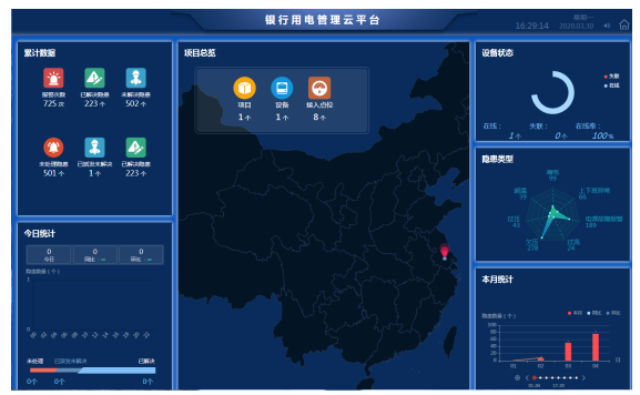 展示界面,方便在大屏幕直接展示整個(gè)平臺(tái)的概況,使用戶實(shí)時(shí)了解網(wǎng)點(diǎn)和設(shè)備信息。