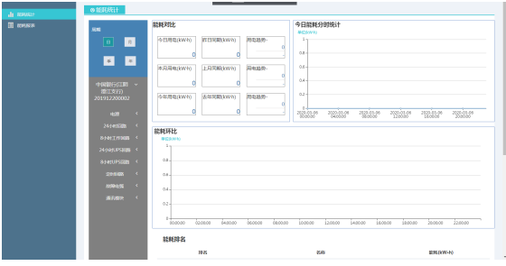 能耗統(tǒng)計(jì)界面 ,針對(duì)各個(gè)網(wǎng)點(diǎn)或者場(chǎng)所,平臺(tái)能夠針對(duì)整個(gè)網(wǎng)點(diǎn)或者單個(gè)回路,按照年、季度、月、日或者小時(shí),對(duì)能耗進(jìn)行查詢并統(tǒng)計(jì),并對(duì)每個(gè)回路進(jìn)行能耗的排名。