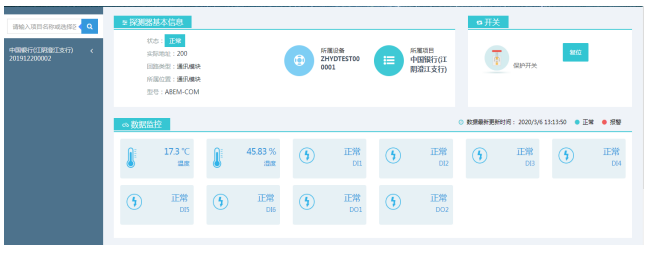 實(shí)時(shí)監(jiān)控頁(yè)面平臺(tái)能顯示設(shè)備在線狀態(tài),能顯示設(shè)備各個(gè)回路的類(lèi)型,監(jiān)控區(qū)域,回路狀態(tài),回路的上下班狀態(tài)。
