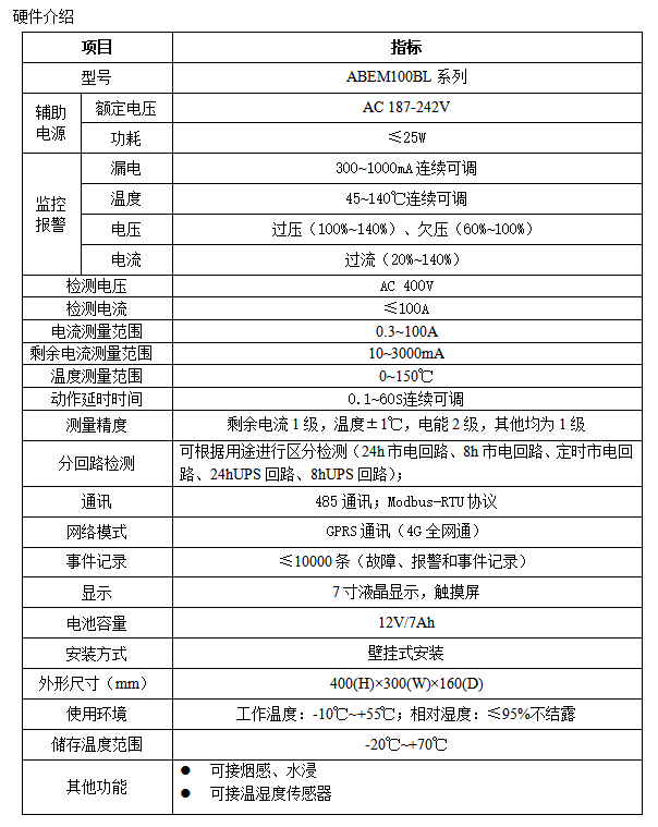 l 可檢測(cè)回路的漏電、溫度、電壓、電流、電能等電參量;